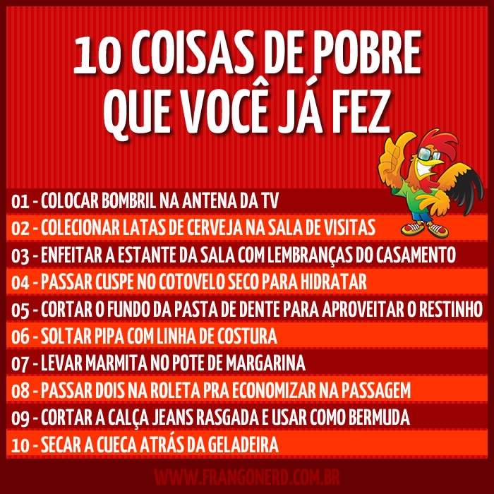 Se você já fez, pelo menos 4 dos itens abaixo, você TAMBÉM é pobre!